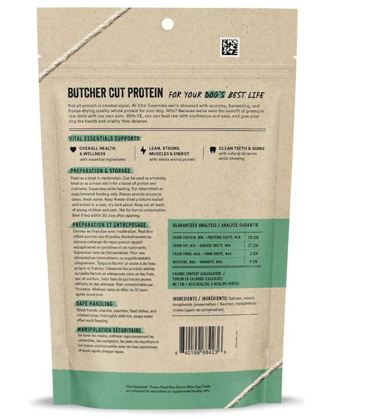 Vital Essentials Freeze Dried Raw Whole Animal Dog Treats, Salmon Bites 2.5 oz