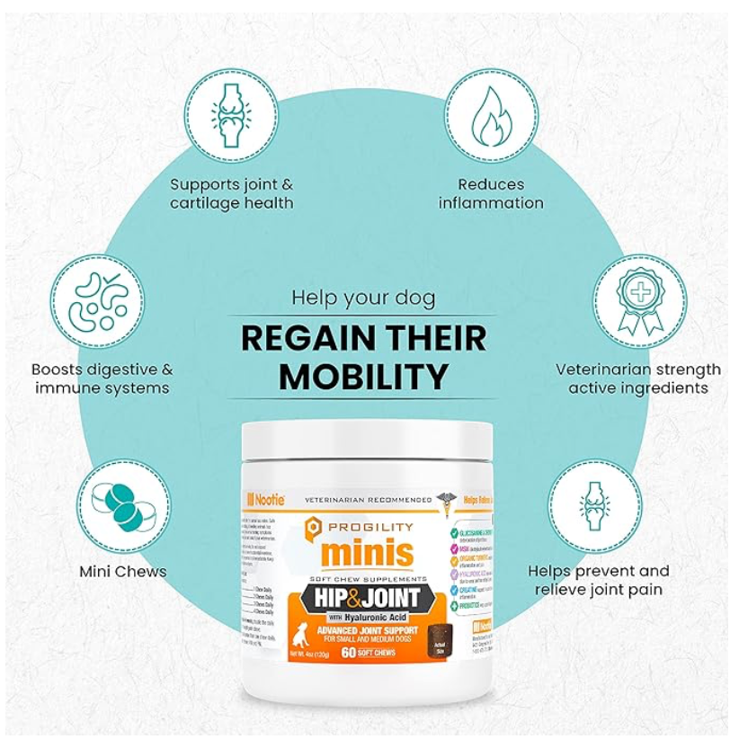 Nootie PROGILITY Daily Hip & Joint Chews for Dogs - Supports Joint Health, Joint Pain Relief. (Mini Hip & Joint Chews- Under 20lbs, 60 Count)